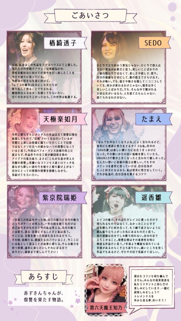 トレメンドス・アカデミー(通称トレアカ)とは、ラディカル・フェミニストによる劇団トレメンドスサーカスが主催するフェミニズム勉強会です。本公演が開催されない時期に、ほぼ毎月違う主題を決めて行っています。